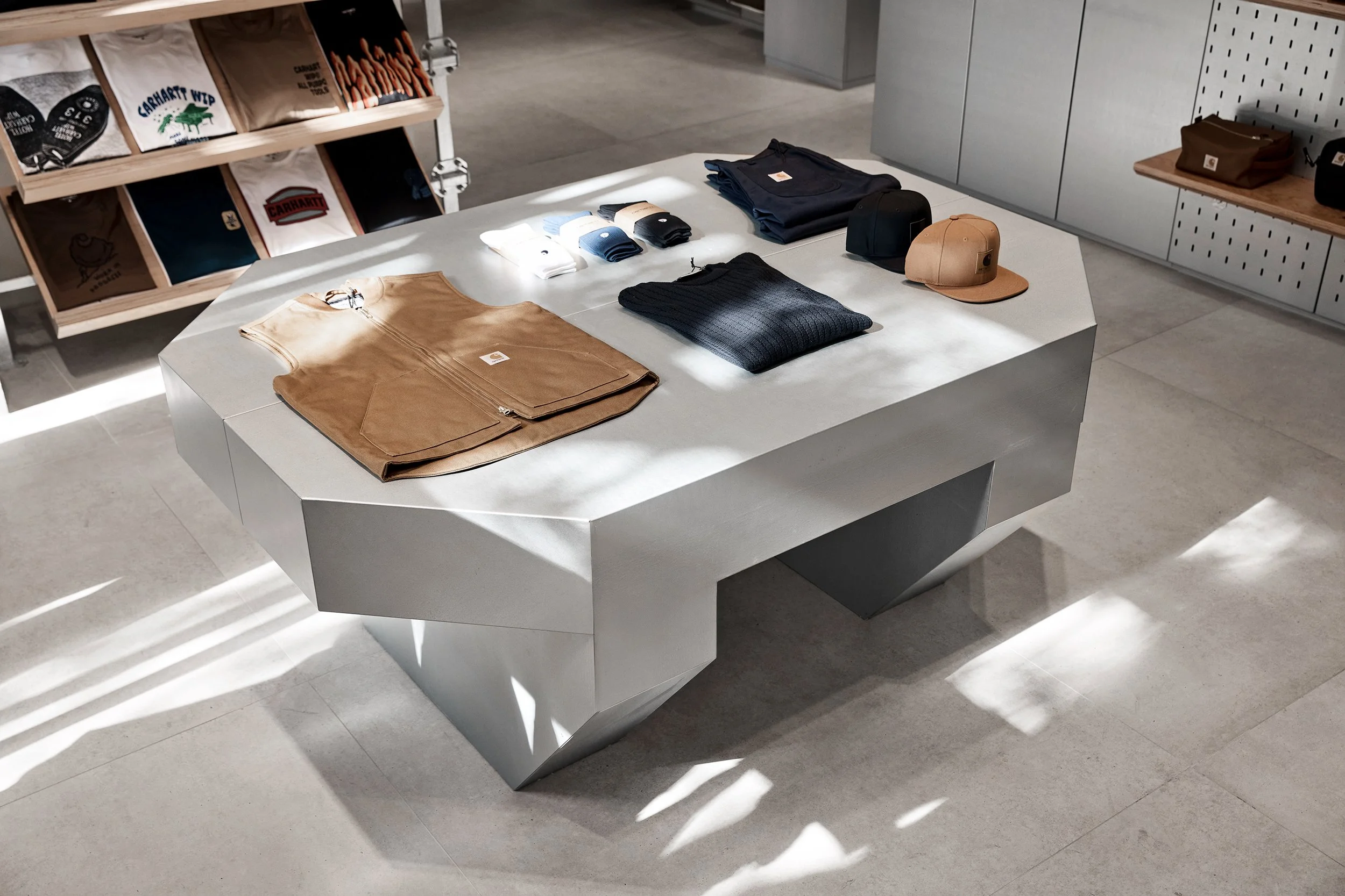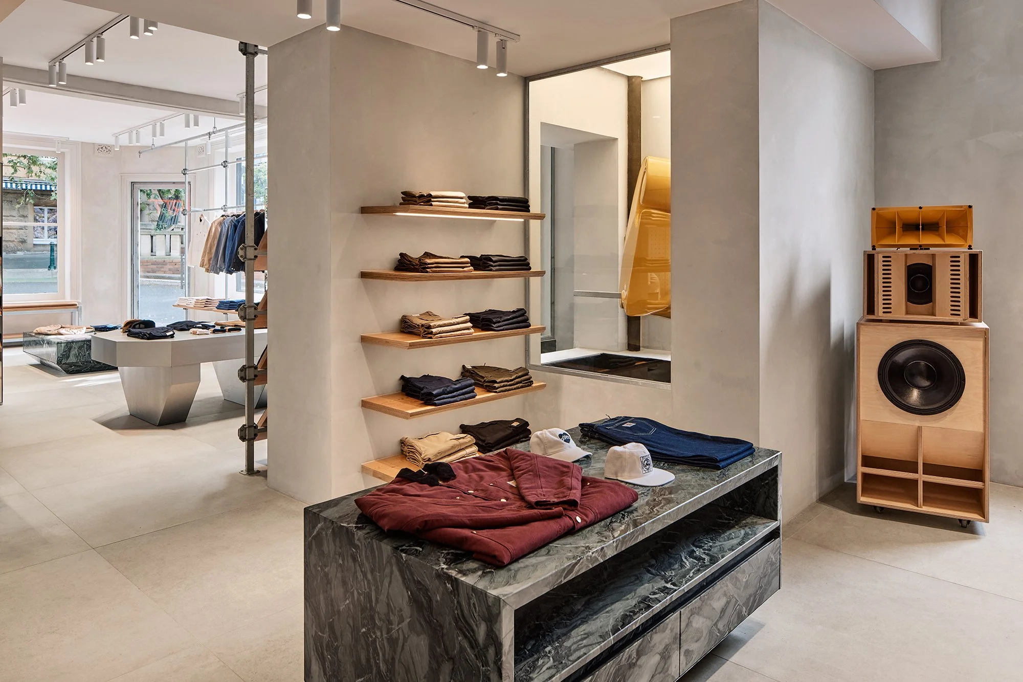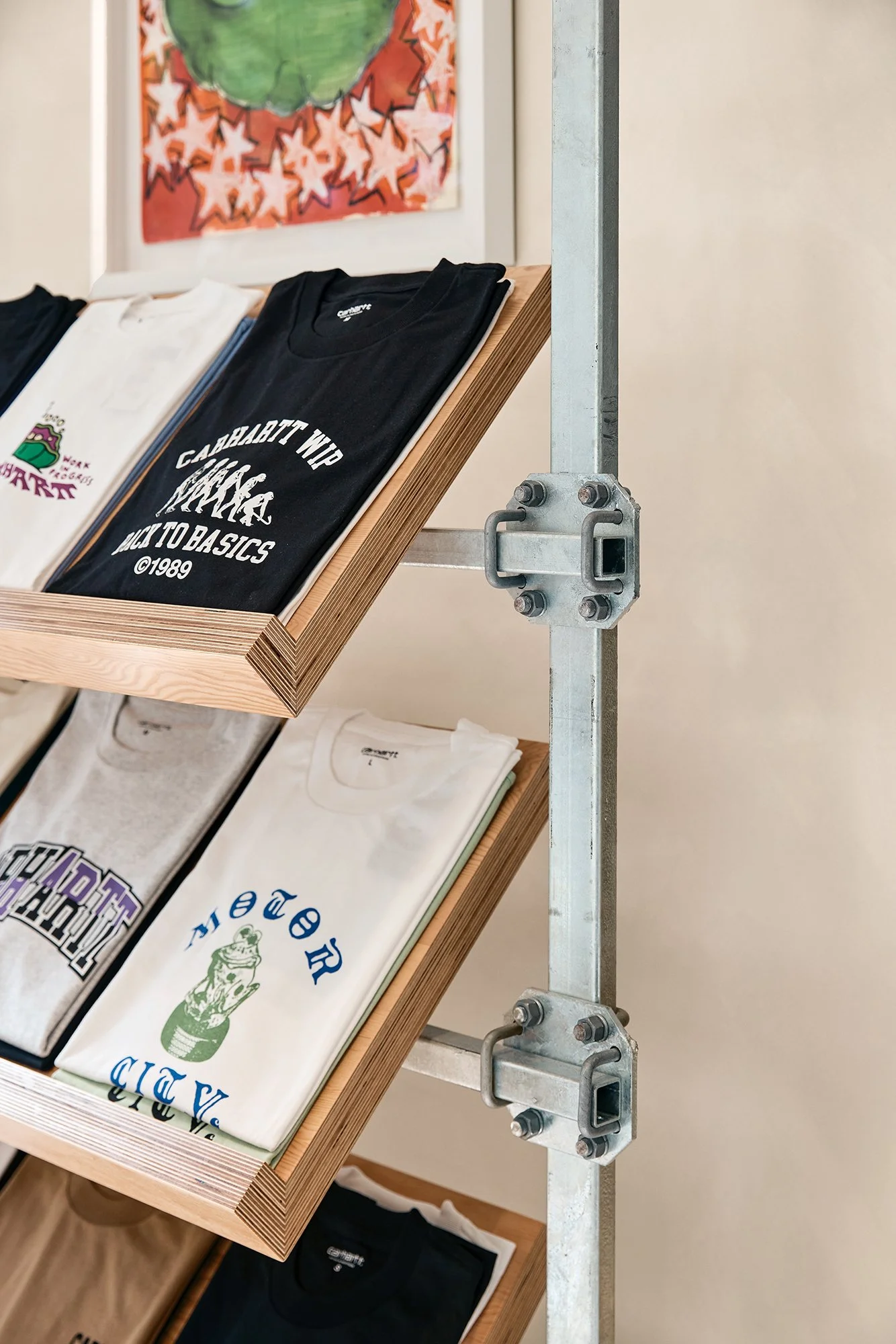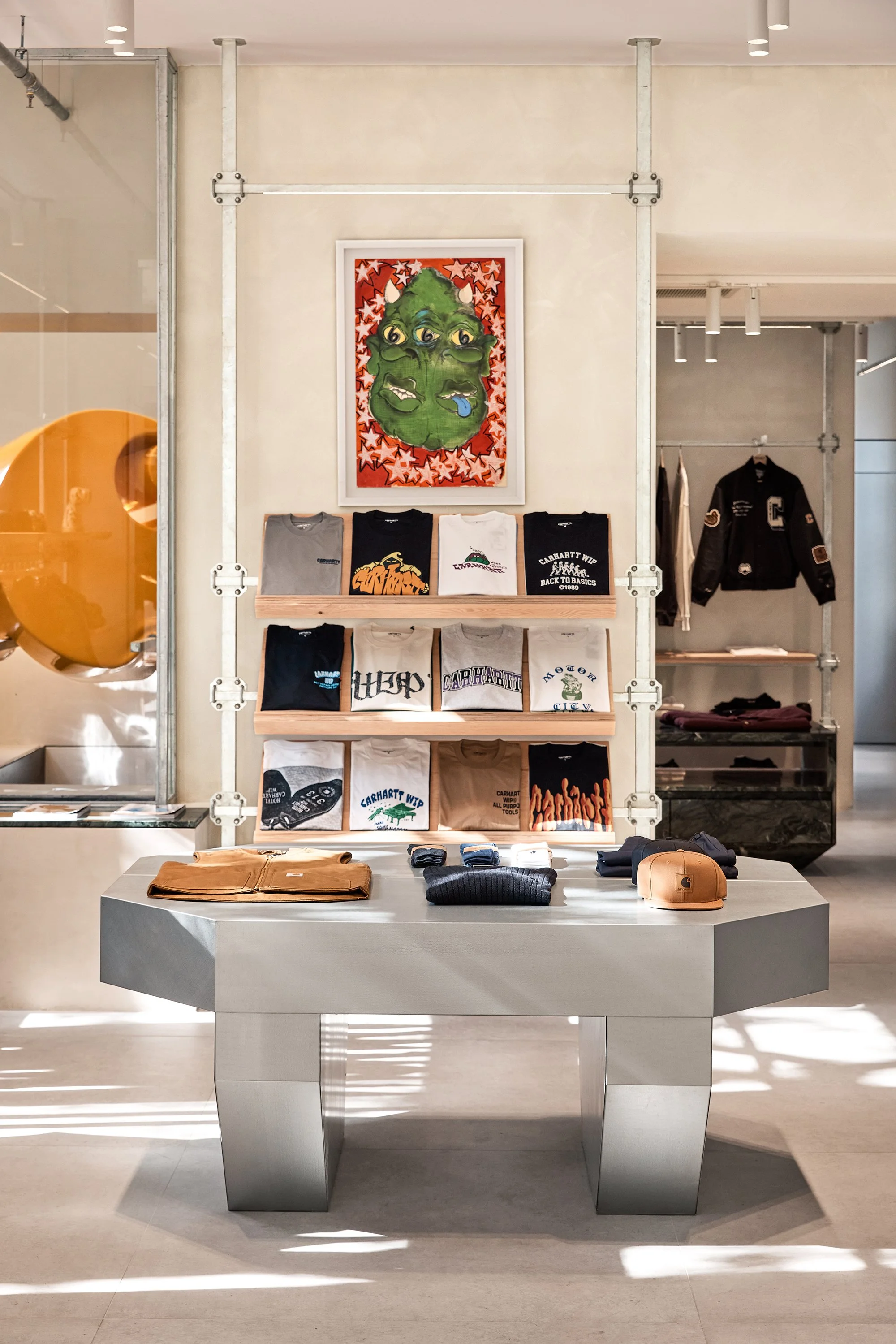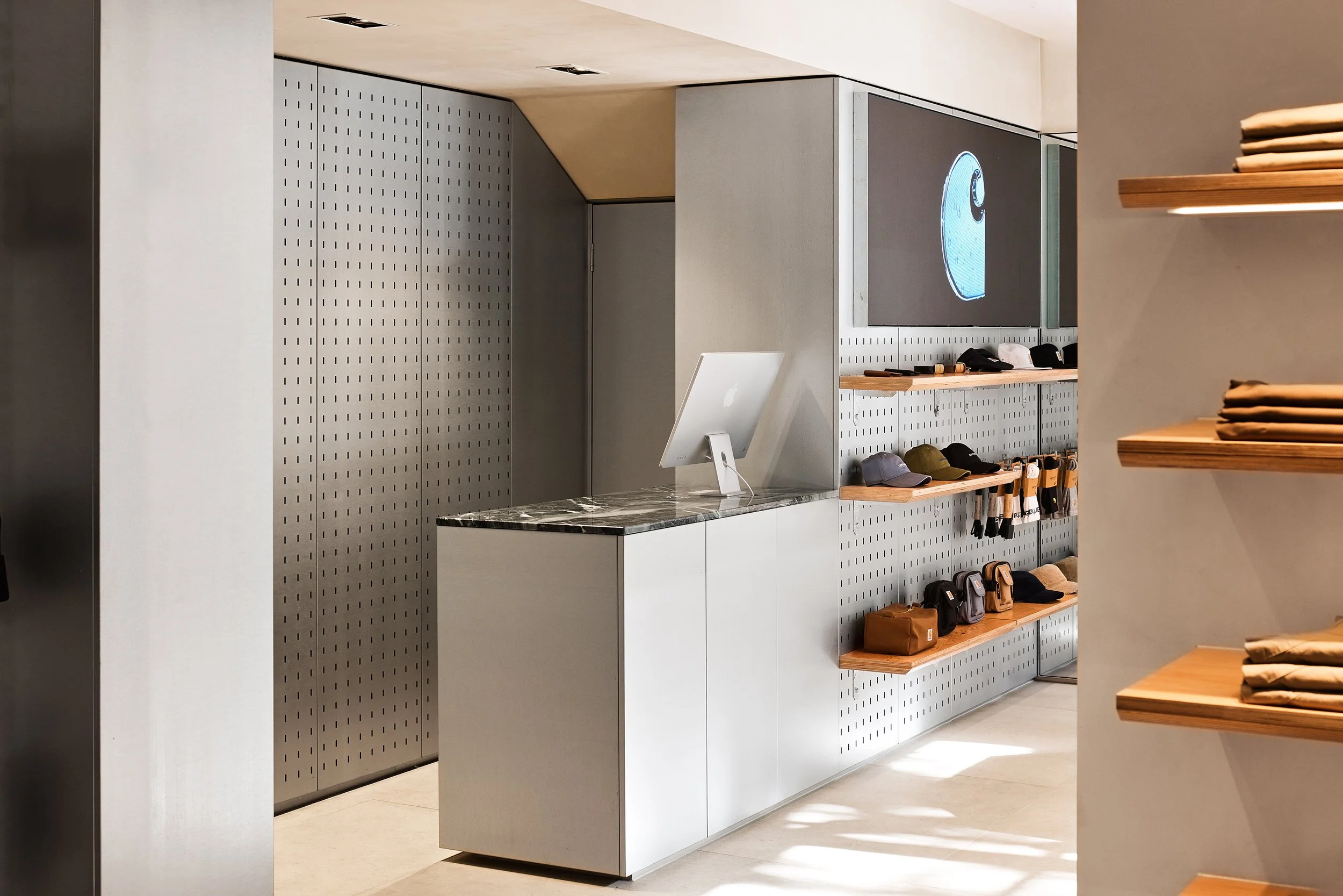 Every element within the store’s modest footprint has been optimised for clarity. The layout prioritises ease of navigation, with clean lines and open zones that guide customers intuitively. The result is a quiet, confident spatial language, a retail environment that amplifies the timeless, utilitarian aesthetic that defines Carhartt WIP globally.