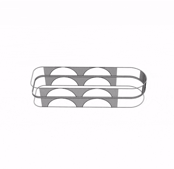 At the heart of the store, a large stainless steel lozenge structure punctuated by arches mirrors the LOR’s scale and serves as a visual anchor. Overhead, an XL digital screen floats above the escalator void, acting as a digital sky.